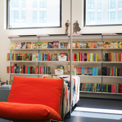 Vi har bøger i mange genrer: fx fantasy, gys, sjove bøger og krimi, og mange slags materialer: fx. billedbøger, tegneserier, film og spil til playstation, nintendo og wii. Der er helt sikkert noget for enhver smag!